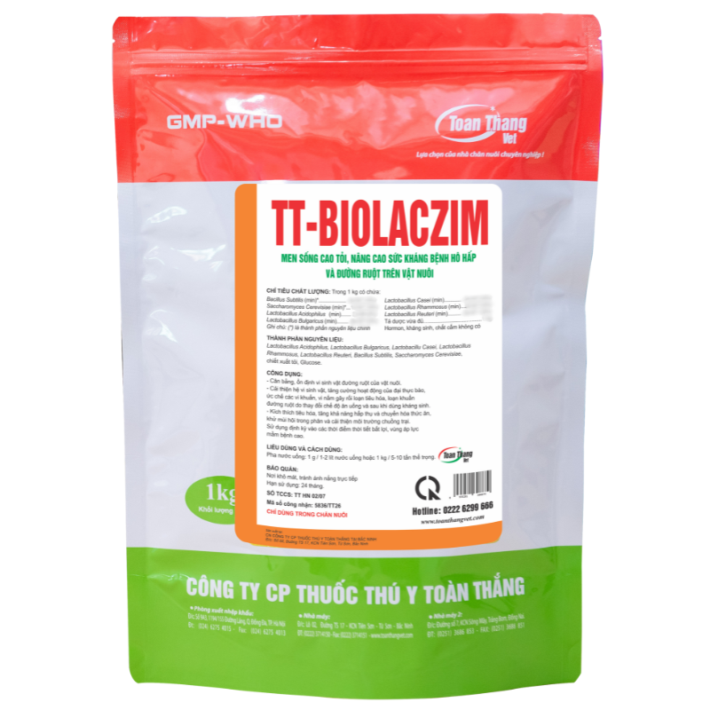 - Cân bằng, ổn định vi sinh vật đường ruột của vật nuôi.- Cải thiện hệ vi sinh vật, tăng cường hoạt động của đại thực bào, ức chế các vi khuẩn, vi nấm gây rối loạn tiêu hóa, loạn khuẩn đường ruột do thay đổi chế độ ăn uống và sau khi dùng kháng sinh.- Kích thích tiêu hóa, tăng khả năng hấp thụ và chuyển hóa thức ăn, khử mùi hôi trong phân và cải thiện môi trường chuồng trại.Sử dụng định kỳ vào các thời điểm thời tiết bất lợi, vùng áp lực mầm bệnh cao.